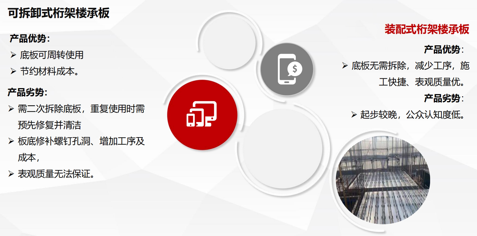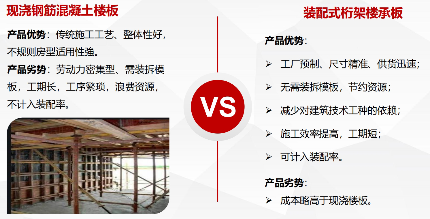 绿色、装配式建筑:在全国大力推广装配式建筑的前提下,装配式钢筋珩架水泥纤维楼承板满足建筑装配式的评价标准,并取得相应的评价得分;
